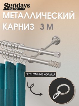 Карниз для штор Sundays Home Орсей 16мм+16мм двухрядный (сатин, 2м)