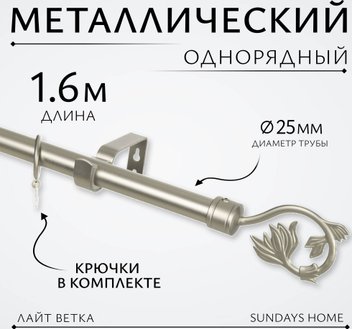Карниз для штор Sundays Home Лайт Ветка 25мм однорядный (сатин, 1.6м)