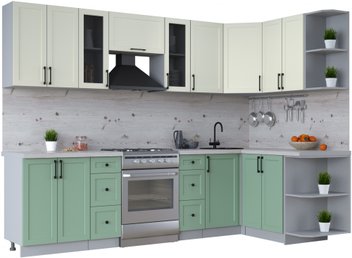 Готовая кухня Интерлиния Тренд 1.5x2.8 правая (мята/белый/бискайская сосна)