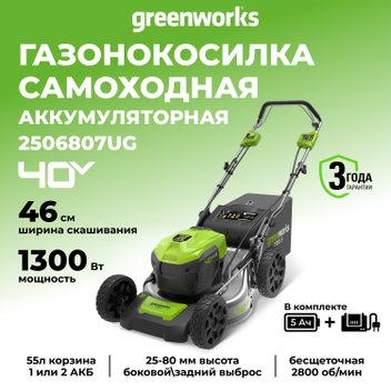 Газонокосилка Greenworks GD40LM46SP 2506807UG (с 1-им АКБ)