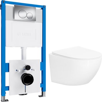 Унитаз подвесной Saniteco KW-99046 в комплекте с инсталляцией + 64117 + S-IN-MZ-LINK_PRO