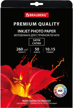 Фотобумага BRAUBERG атласная (сатин) A6 (10x15) 260 г/м2 50 л 364001