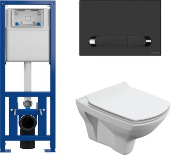 Унитаз подвесной Cersanit Carina New Clean On с инстал. Link Pro (с кнопкой Estetica 64112 черный/хром)